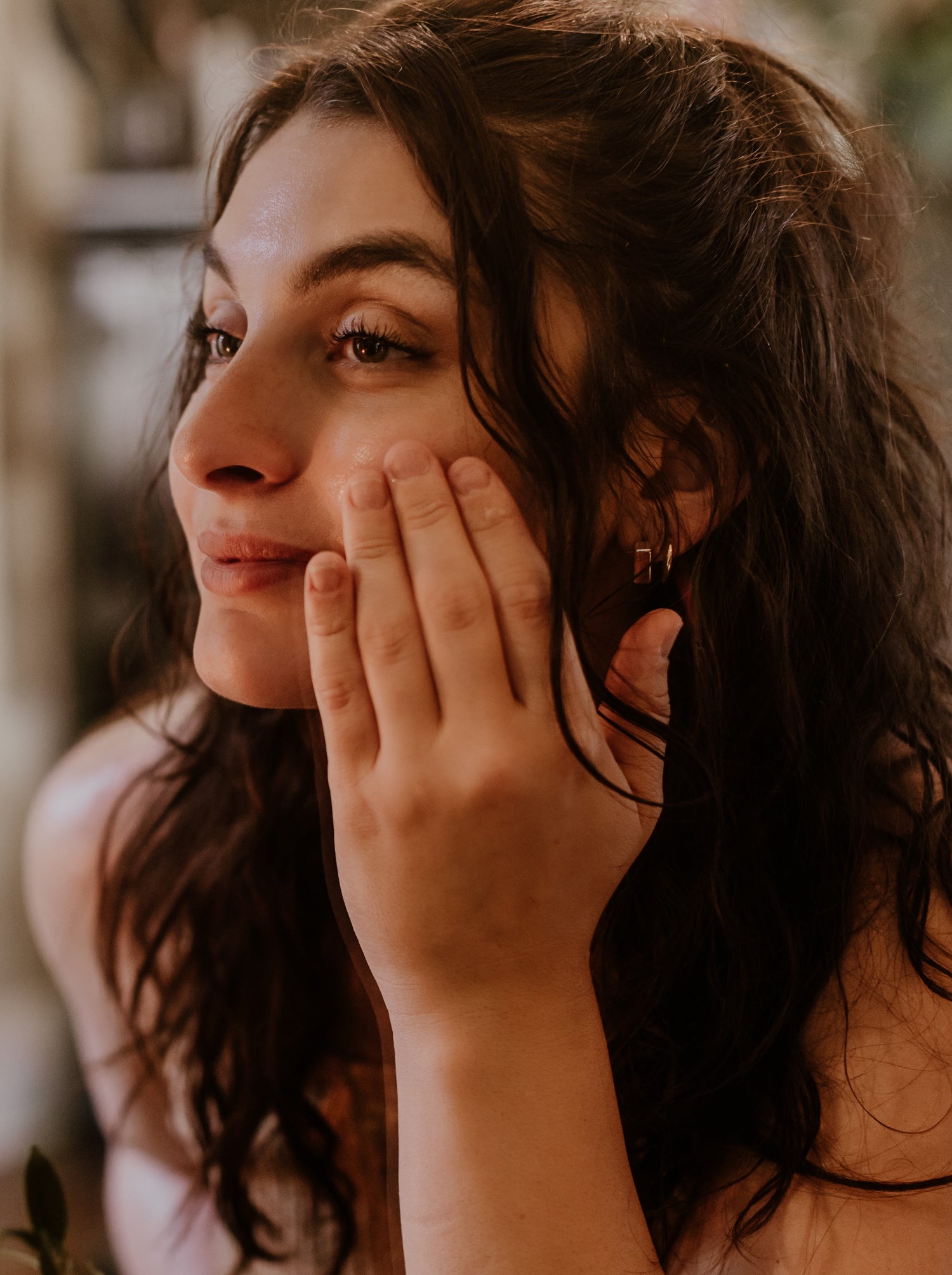 Gently massage the hydrating oil into your skin with small, outward circular motions. As you do this, scan your energy field (the space in and around your body). Use the tips of your fingers to thoroughly distribute the oil across your face. Scan the way you’re feeling from the bottom of your feet all the way to the top of your head. How does it feel? Is there anything you can let go of?