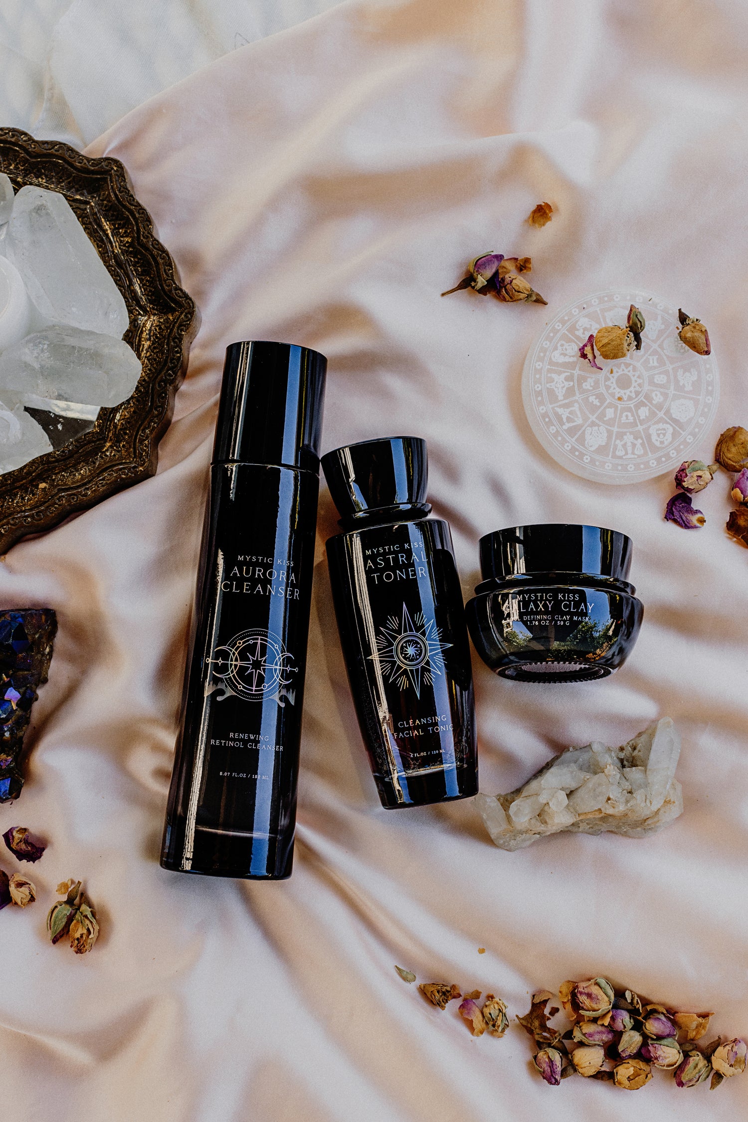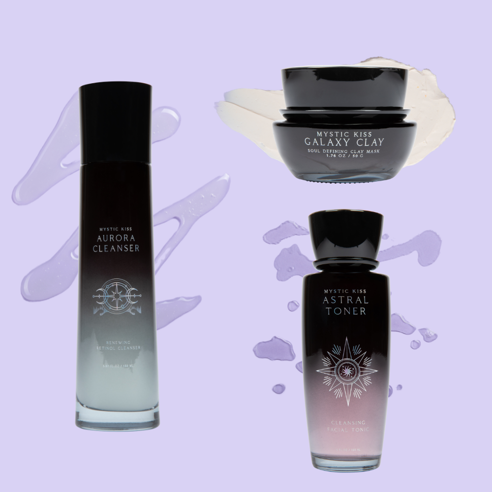 Uncover the secret to a flawless complexion with the Calm & Clear Ritual Bundle by Mystic Kiss. This transformative trio—Astral Toner, Galaxy Clay Mask, and Aurora Retinol Face Cleanser—works synergistically to cleanse, tone, and deeply purify your skin. Experience the soothing effects of tailored ingredients as they refine pores, balance skin tone, and reveal a bright, clear complexion.