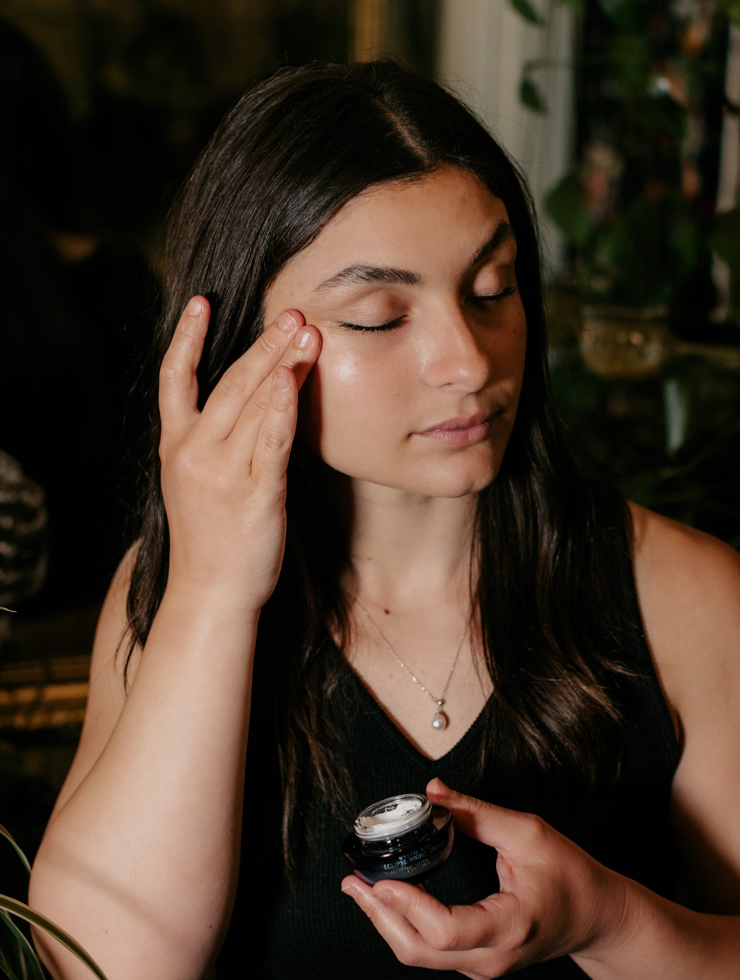 Place a quarter sized amount of Eclipse Night Cream onto your fingertips.