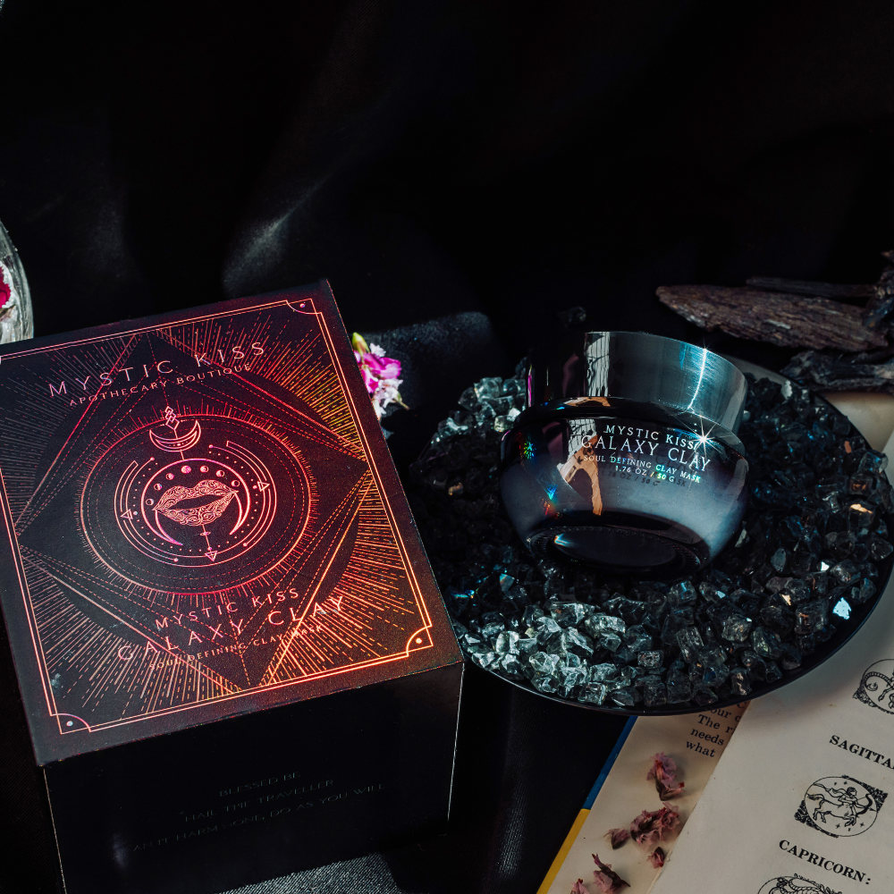 Dive into the cosmic embrace of the Galaxy Clay Mask from Mystic Kiss. This celestial concoction harnesses the potent powers of CoQ10, Organic Aloe Vera Juice, White Kaolin Clay, and Red Rhassoul Clay to detoxify, nourish, and revitalize your skin. Perfect for a deep cleanse, it draws out impurities while infusing your skin with moisture, leaving it soft, purified, and luminous. The Galaxy Clay Mask ensures your complexion is as radiant as the stars.