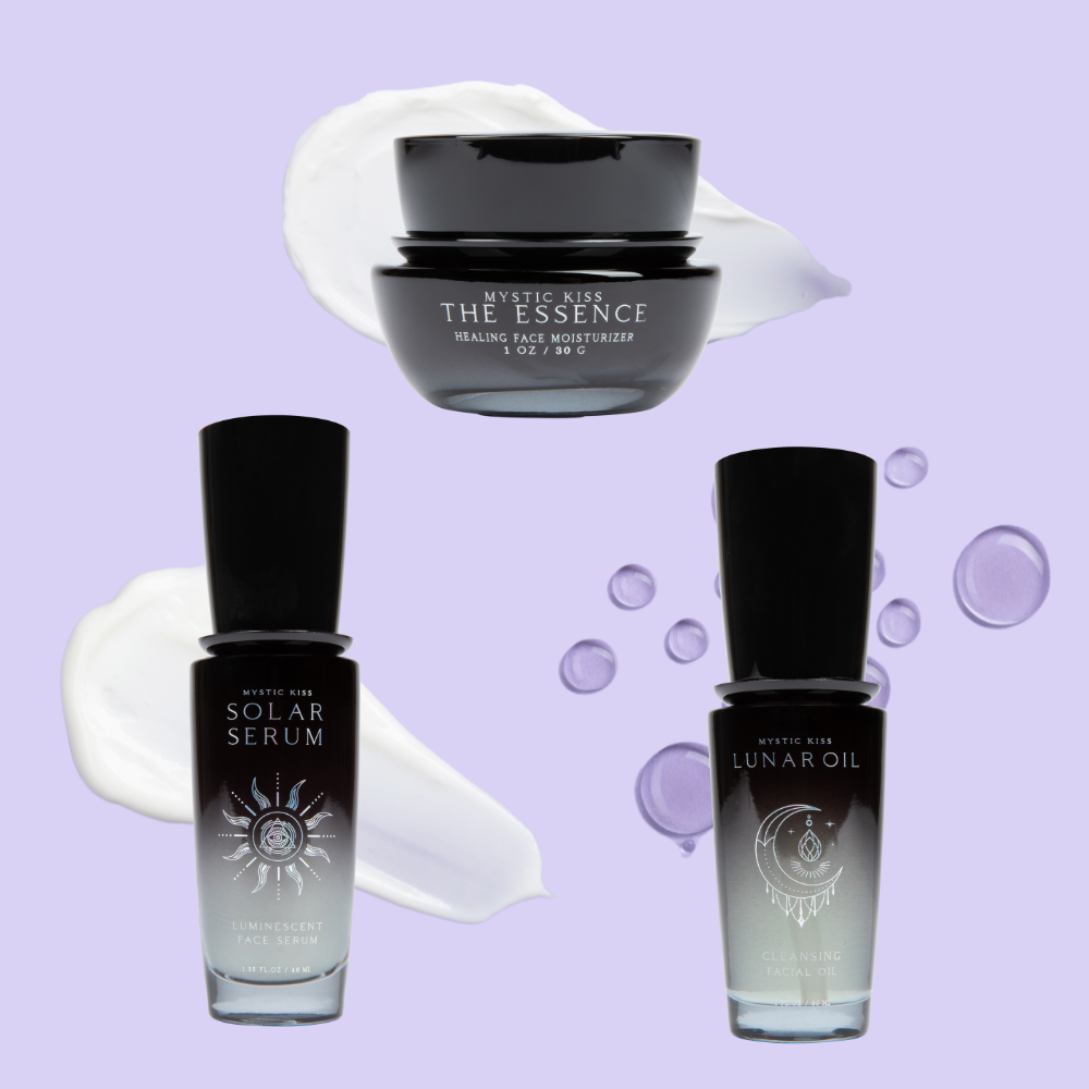 Quench your skin’s thirst with the Hydration Boost Ritual Bundle from Mystic Kiss. This premium set, featuring the Essence Moisturizer, Lunar Oil, and Solar Serum, synergistically works to deeply hydrate, replenish, and illuminate your complexion, ensuring lasting moisture and a radiant, dewy glow.