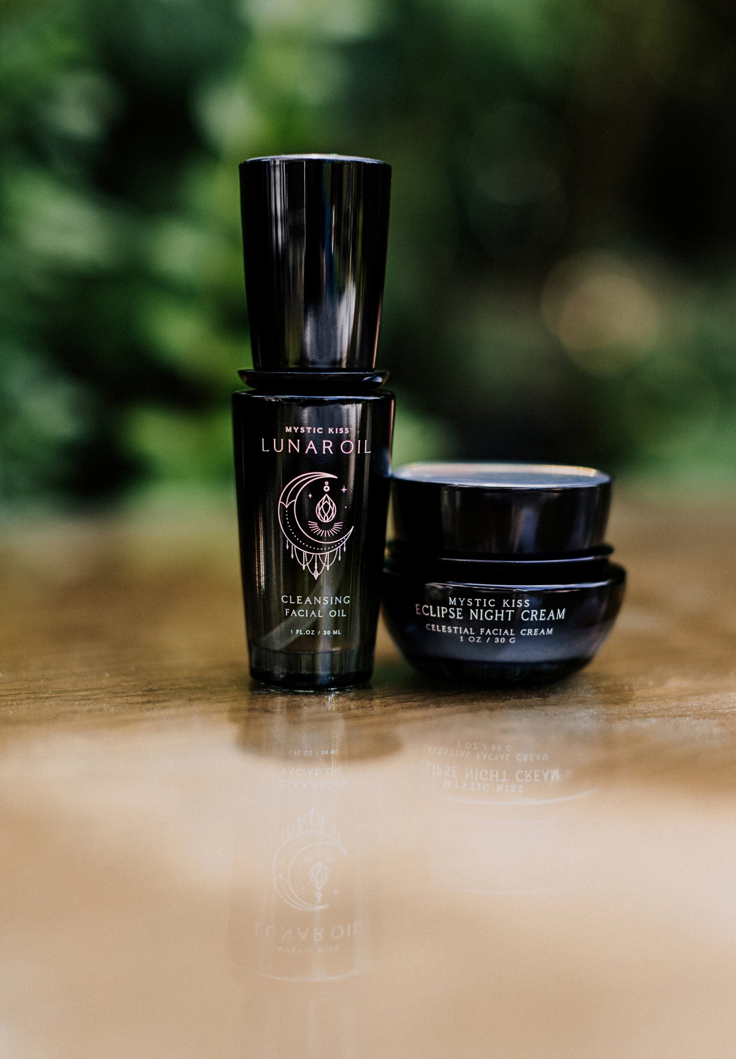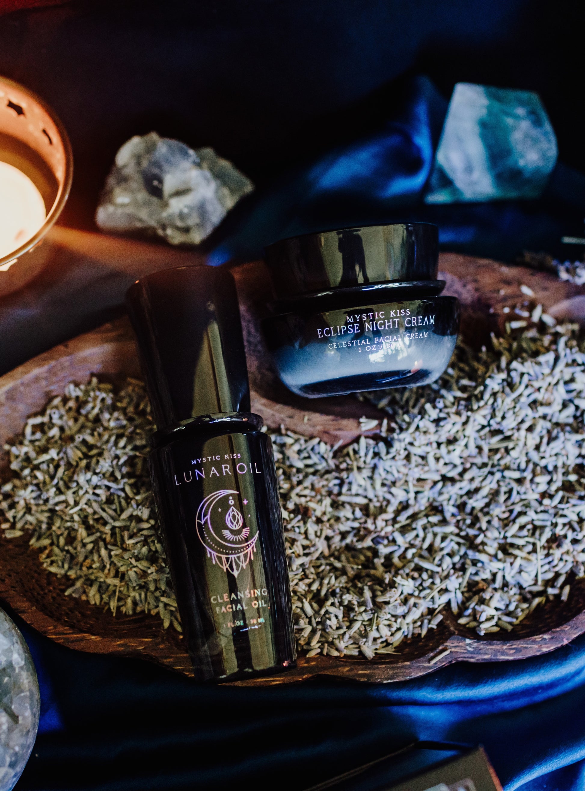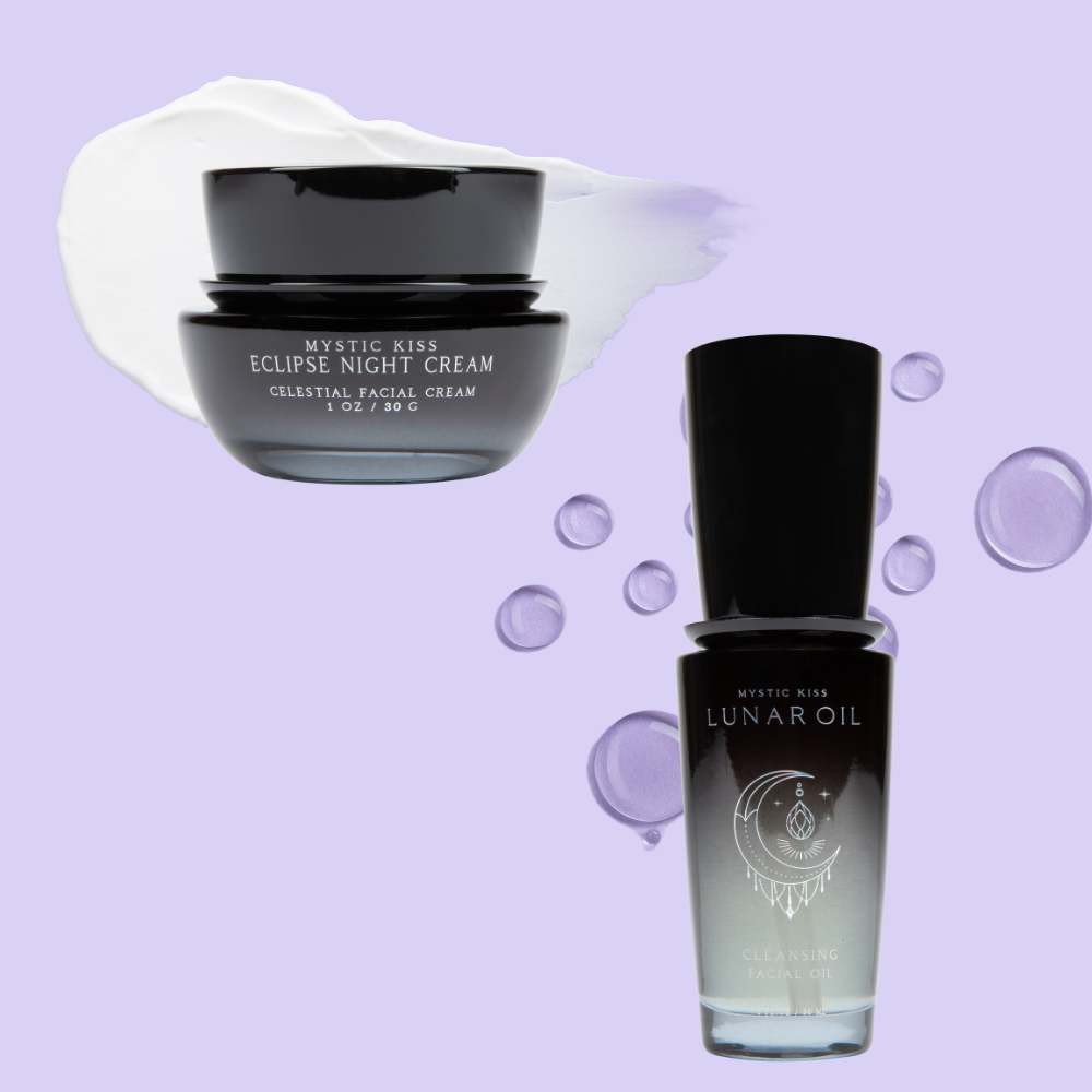 Immerse yourself in the restorative depths of the Nighttime Renewal Ritual Bundle from Mystic Kiss. This nourishing pair, featuring Lunar Oil and Eclipse Night Cream, works in perfect harmony to deeply repair, moisturize, and rejuvenate your skin while you sleep.